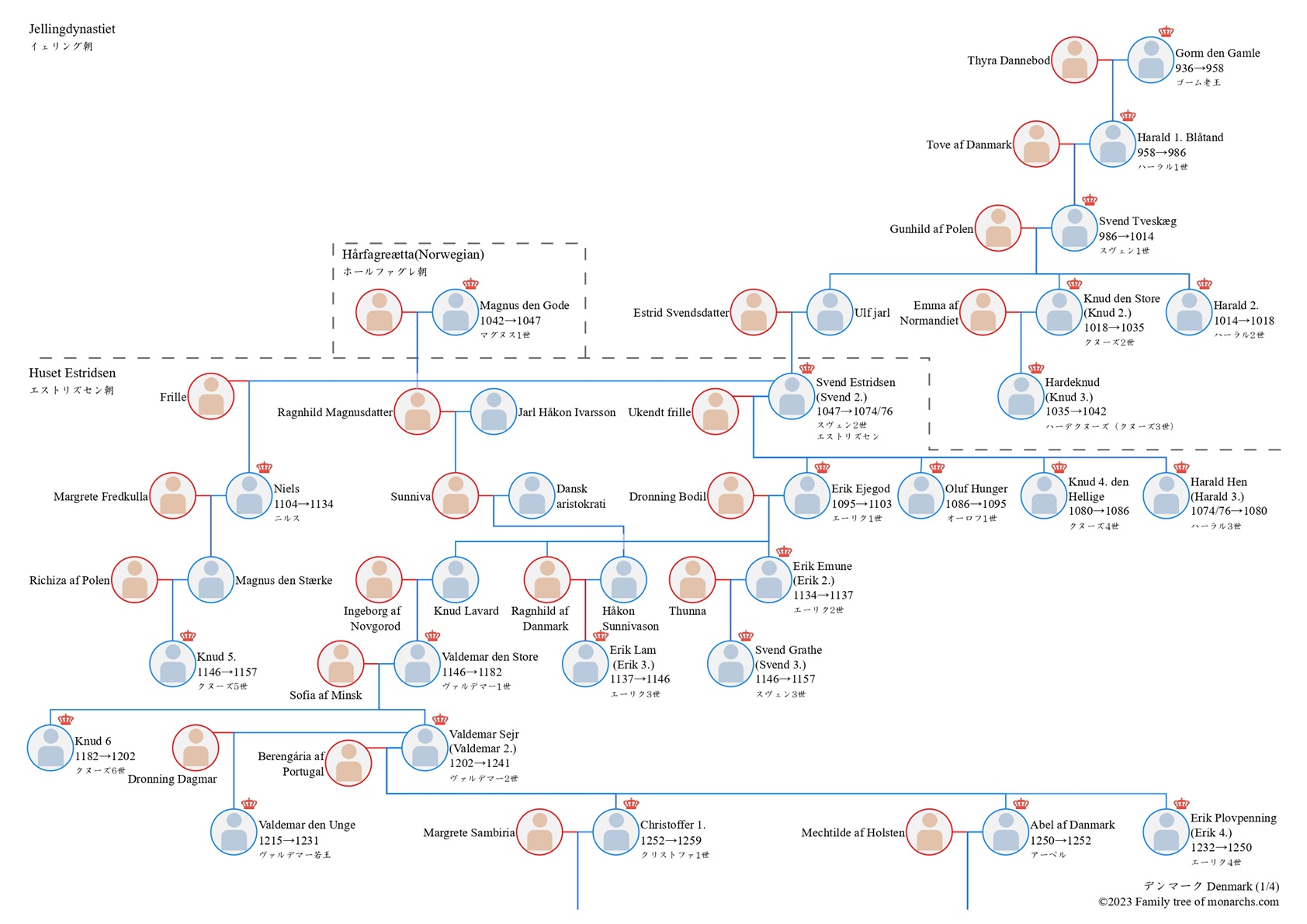 デンマーク王室の起源は、10世紀に成立した王権にさかのぼります。