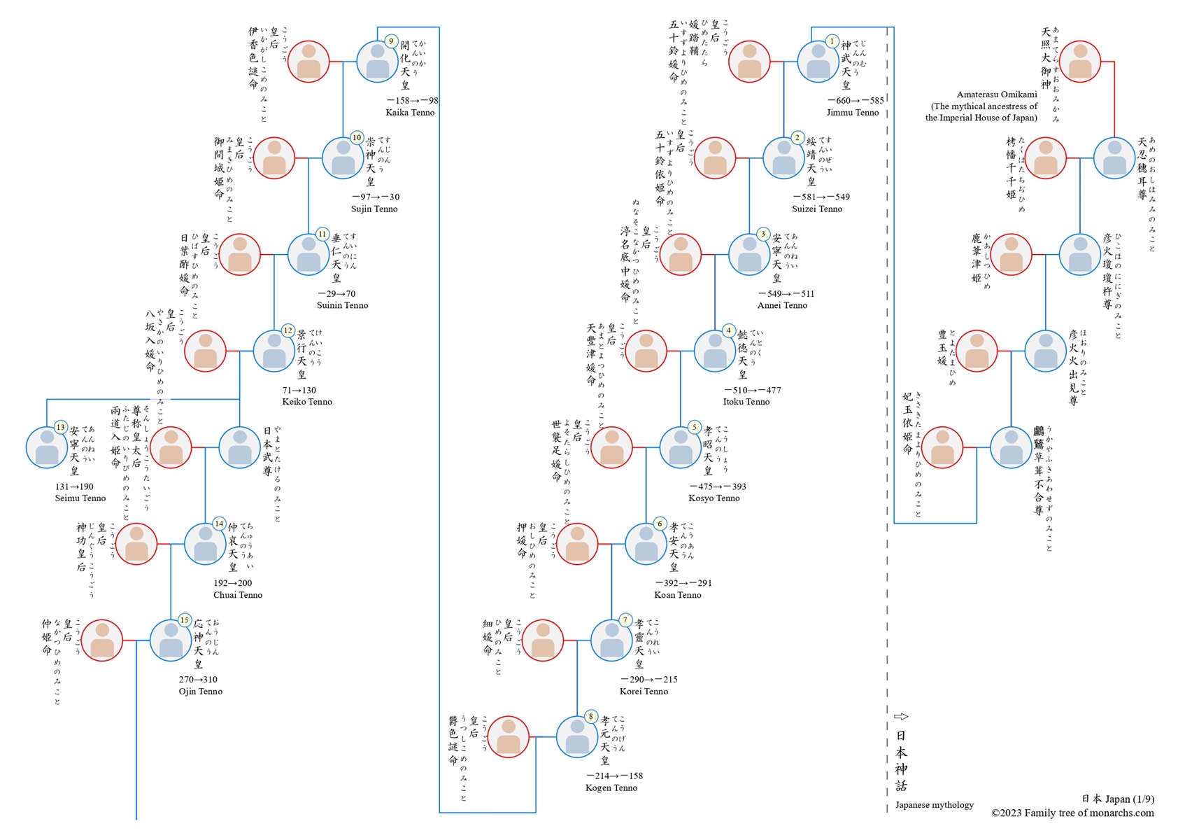 つまり、お父さんを辿(たど)れば、例外なく初代天皇陛下である神武(じんむ)天皇まで遡(さかのぼ)ることが出来るのです。