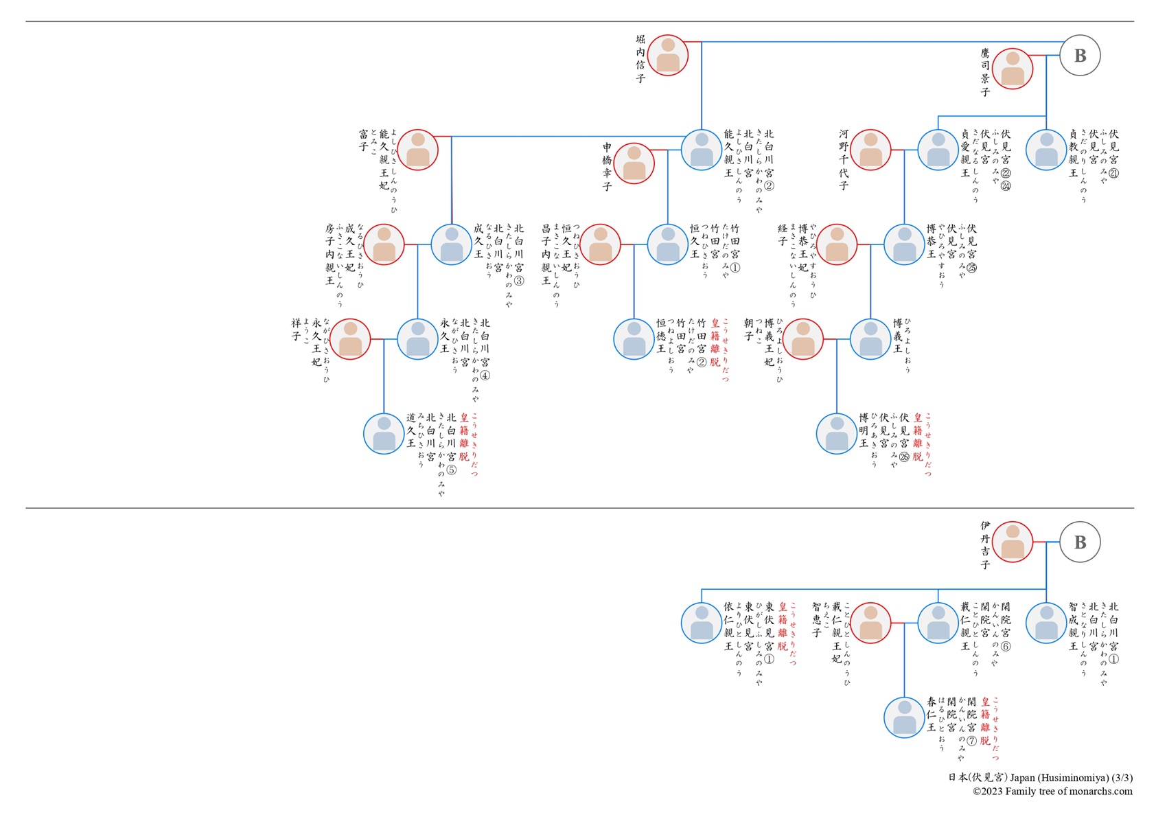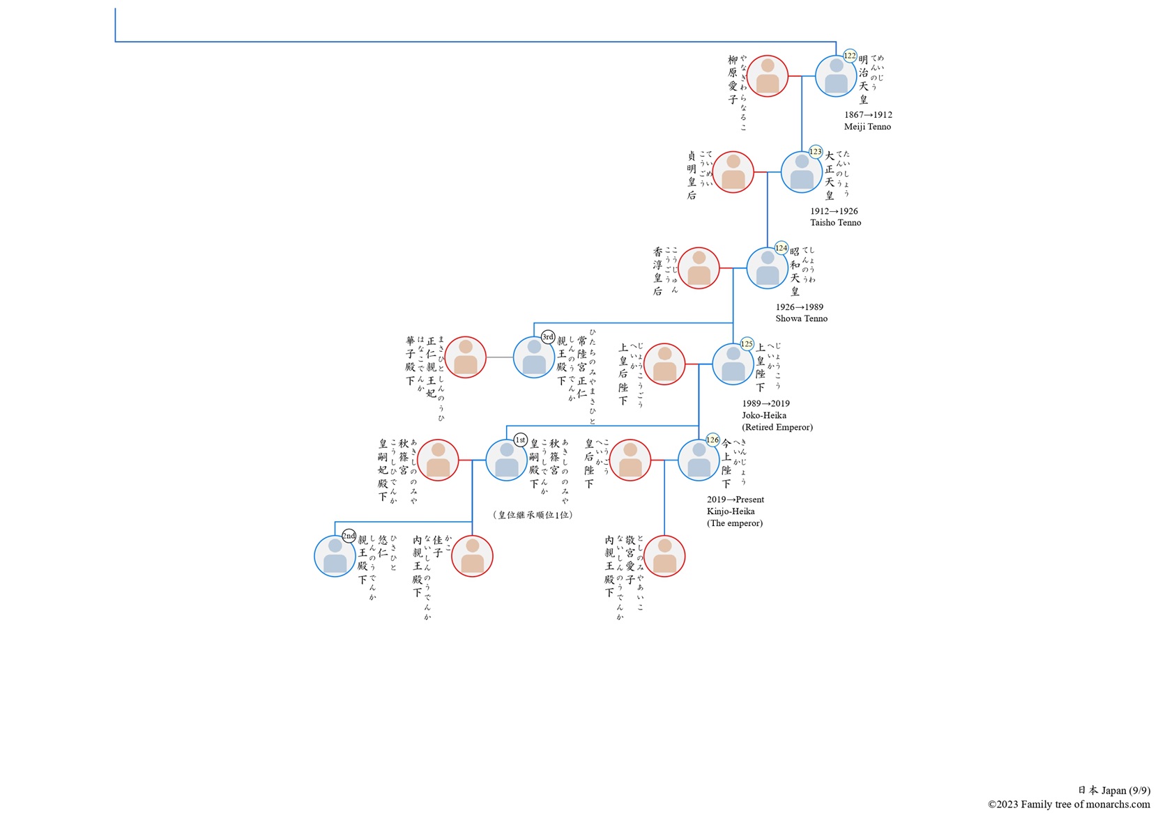 政府機関の非公式な調べによると2019年時点で10代5人、20代前半2人の皇位継承者たり得る男子、すなわち男系・父系で皇統につながる男子が旧11宮家にいらっしゃるという現況があります。