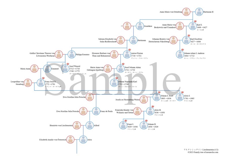 有料版では、「Sample」表記のない、鮮明な家系図PDFをダウンロードできます。