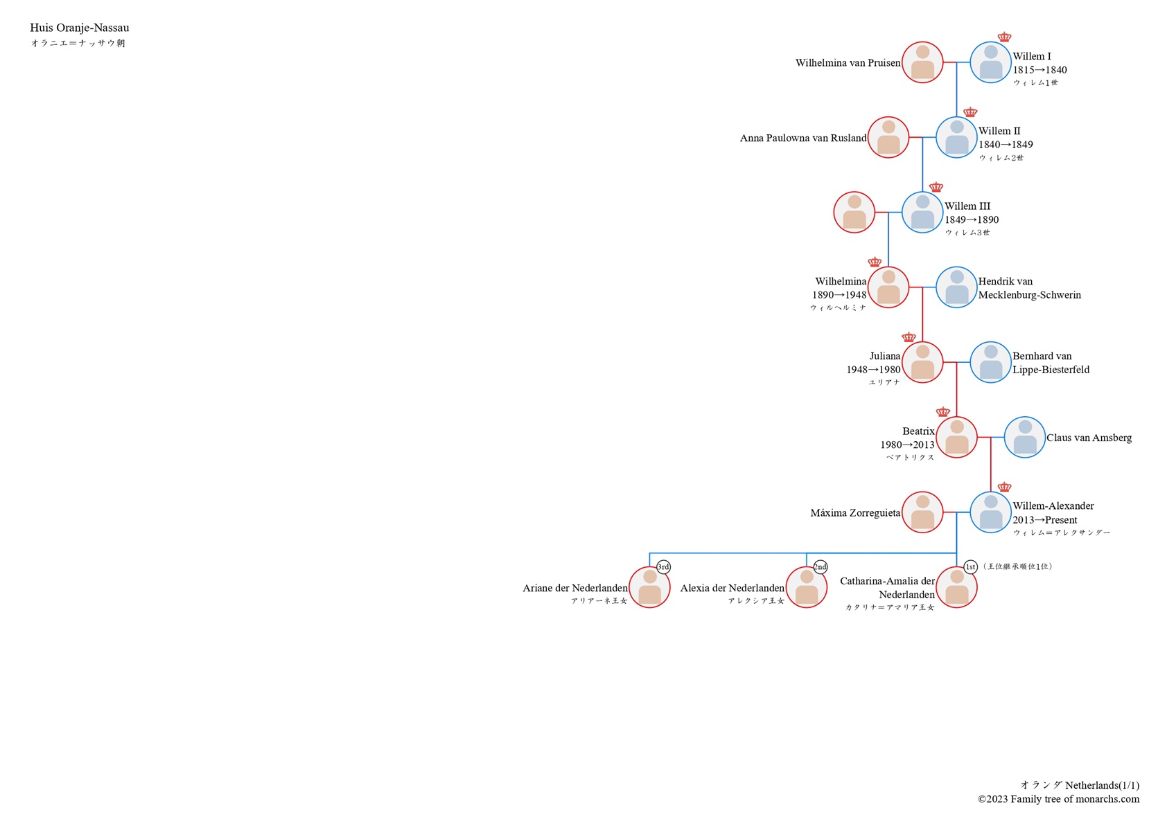 オランダ王室の家系図 更新日:2026-02-06 公開日:2026-01-23 家系図 注:図中の言語はオランダ語です。 関連記事 デンマーク王室の家系図ベルギー王室の家系図タイ王室の家系図イギリス王室の家系図ルクセンブルク王室の家系図ブルネイ王室の家系図 投稿ナビゲーション バーレーン王室の家系図ルクセンブルク王室の家系図