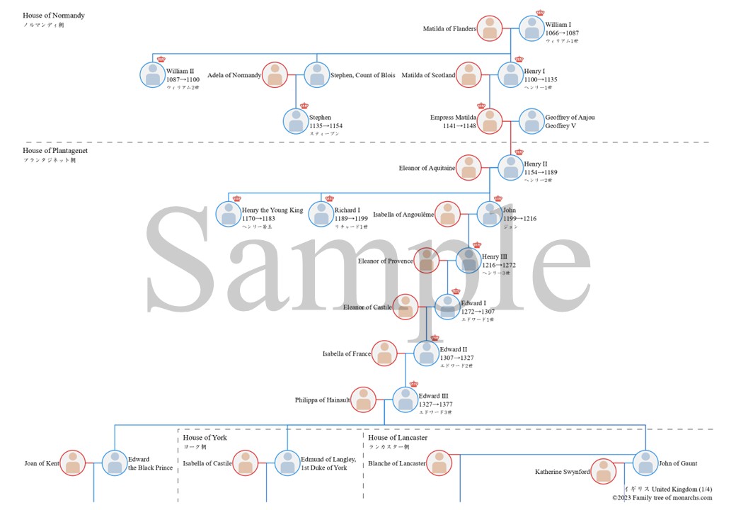 ※ 歴代の王の血筋や王位継承の流れを、視覚的に確認できます。歴史好きの方・研究資料としてもおすすめです。