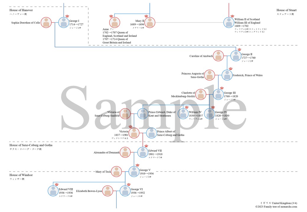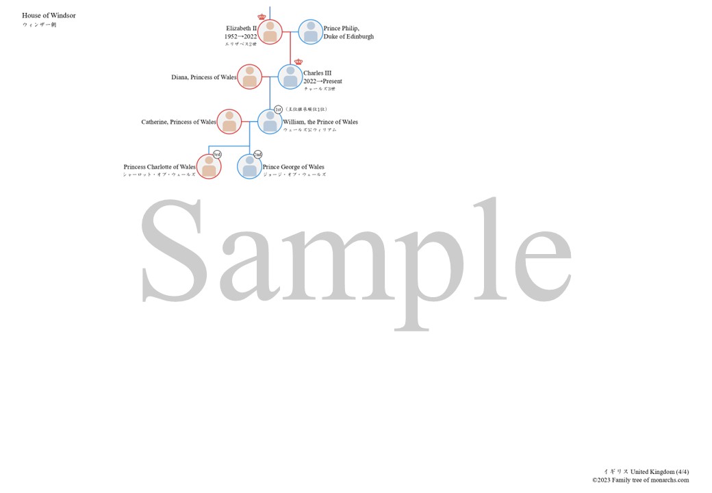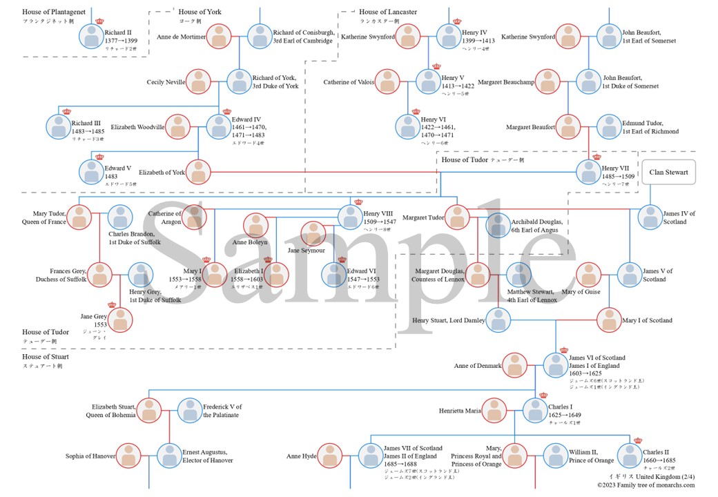 この無料ページでは、イギリスの王室の家系図について概要をご紹介しました。より系譜を鮮明な画像でじっくり確認したい方のために、有料版のPDFをご用意しています。